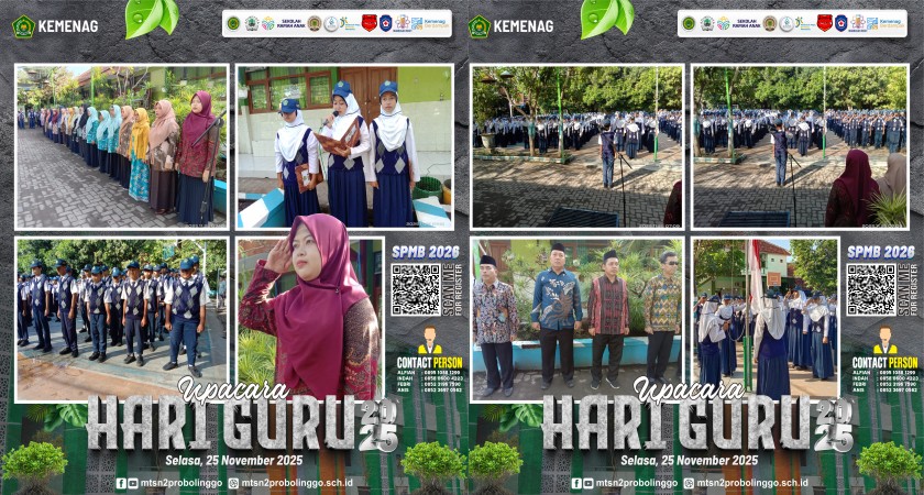 HARI GURU NASIONAL 2025 DI MTSN 2 PROBOLINGGO (UPACARA KHIDMAT BERTEMA “MERAWAT SEMESTA DENGAN CINTA”)