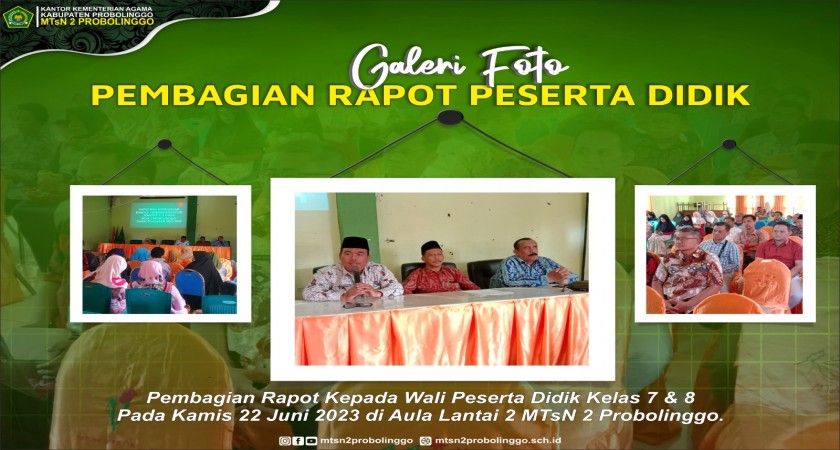 MTsN 2 Probolinggo melaksanakan pembagian raport pada kamis dan jum'at 22-23 juni 2023.